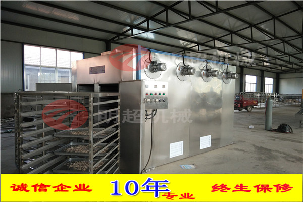 電加熱沙果干烘干機只需要在烘干之前將物料擺放在不銹鋼托盤中,推進烘干房內部,設定好時間溫度跟定時排濕系統,就可以去做別的事情。烘干房會自動升溫,自動控溫,自動排濕,完成后會自動報警。相較于烘干機而言,成本低,烘干效果與烘干機一致。使用更加靈活:烘干機一般來說配置流水線作業,對于產量較少的客戶來說,烘干機就不太適用了,而烘干房更加靈活,占地面積也小,更加方便。開始為了升溫設備運行的功率會大一些,升到設定的溫度之后,設備的功率就會減半,耗能低。開始功率大是為了升溫快,節省烘干時間。
