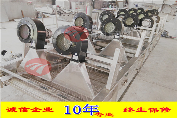 1.采用多次翻轉多臺風機吹。采用低功率、低噪音的風機,吹風口成風刀狀,吹干風溫為常用溫,有效保護物料本身的色澤和品質,效果更佳。