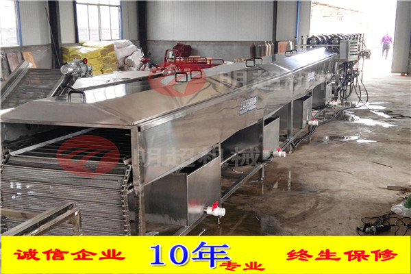 蒜苗清洗機主要是通過蓄水池,無縫鋼管,高壓水泵,網帶組成,首先要將蓄水池里面加滿水,然后通過高壓水泵無縫鋼管輸送到噴淋管道里面,經過網帶往前輸送,直達噴淋管道進行沖洗,采用上下噴淋的方式,在不損傷表皮的情況下,將蒜苗清洗干凈,泥沙再次經過下水口,直接回收到蓄水池里面,雜質和泥沙隨著水流截留在蓄水池上面的過濾裝置上面,蓄水池一共兩個,當蓄水滿事,可通過水泵進入到另一個蓄水池里面,防止水溢出,也可根據客戶的需求,量身定制設備。