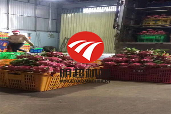 火龍果清洗后,需要進行風干瀝水,下面這個圖片就是風干瀝水機,用的是一條網帶,方式火龍果損傷。