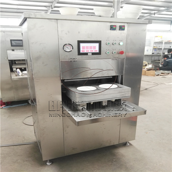 設備操作簡捷方便,各項操作程序參數設置完畢,只需輕輕推入封口模具即可自動完成抽真空、充氣、封口、切邊、廢膜回收等工作程序。整套設備采用分體式設計,即包裝設備與真空、充氣系統可根據設備安裝條件和空間分別安放,兩者之間由管線連接,以適應不同條件下進行生產的要求。熟食制品中西式畜禽熟食制品、鹵菜、炒菜、燉菜、快餐、方便面等熟食制品的保鮮,要求保鮮防腐和保持原汁原味。保鮮氣體一般由CO2N2等氣體組成。氣調包裝后,保鮮氣體在食物表面形成保護膜,從而達到抑菌保鮮,保持食品營養成份及原有口感、口味、形狀。